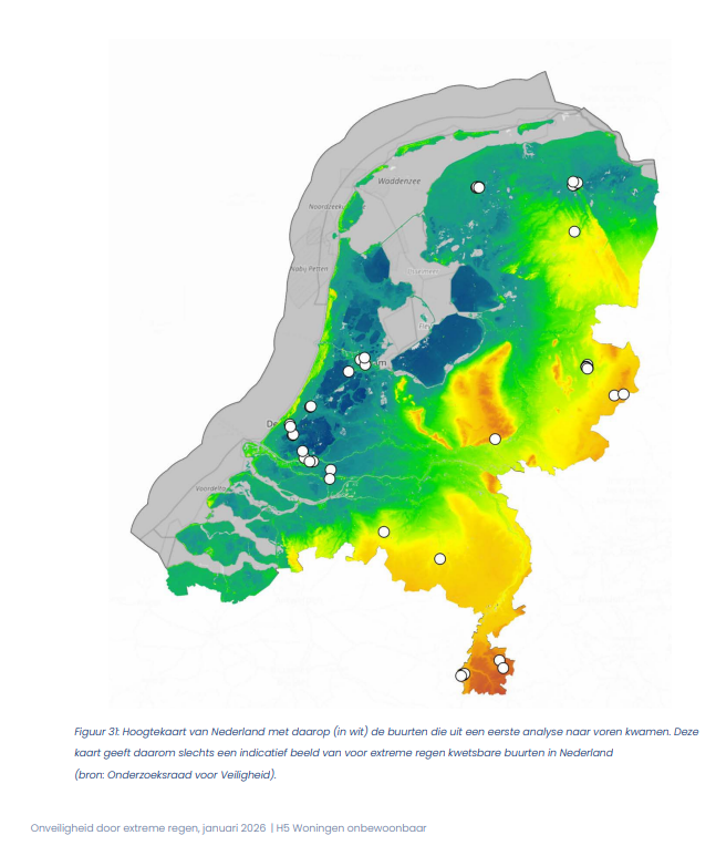 De Onderzoeksraad voor Veiligheid concludeert dat Nederland, ondanks de ingezette acties en getroffen maatregelen, nog onvoldoende is voorbereid op toenemende onveiligheid door extreme regen. Klimaatverandering zorgt voor hevigere, langere en intensere buien. Dat kan leiden tot wateroverlast, economische schade en gezondheidsproblemen. Ook kan vitale infrastructuur uitvallen, zoals stroomvoorzieningen en zorgfaciliteiten.