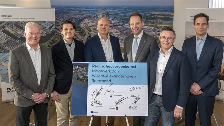 Vandaag hebben Provincie Limburg, gemeente Roermond, Waterschap Limburg en Port of Roermond Coöperatief U.A. een realisatieovereenkomst getekend voor de hoogwaterbescherming en verduurzaming van de Willem-Alexanderhaven in Roermond. Dit is een belangrijke stap richting een hoogwaterveilige, duurzame en economisch sterke toekomst voor het havengebied en de stad Roermond.